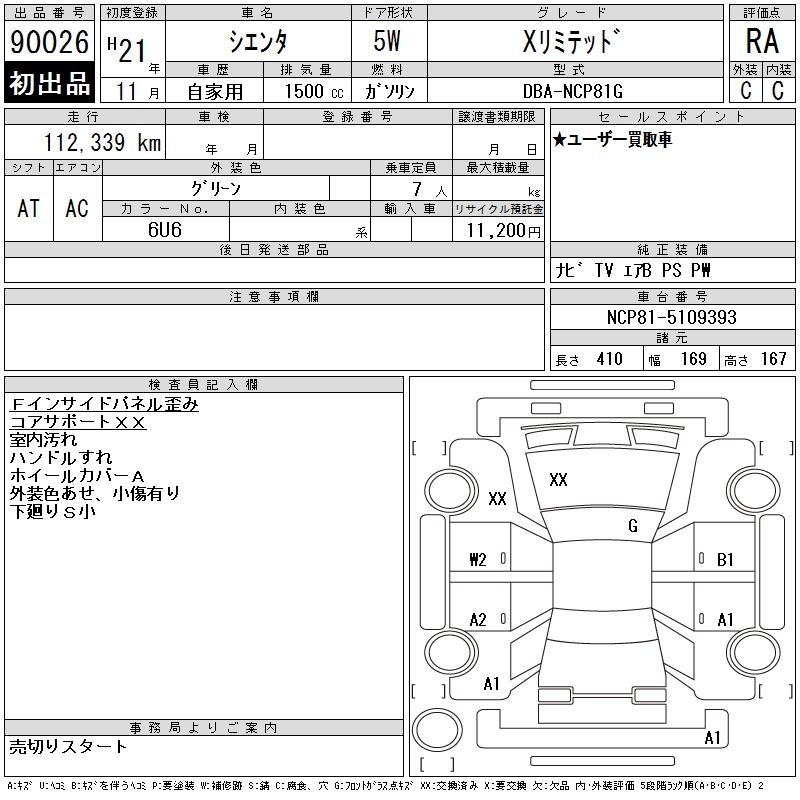 TOYOTA SIENTA X LIMITED - лот 90026