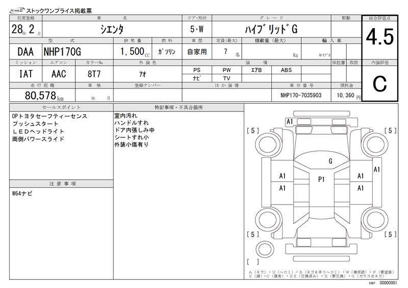 TOYOTA SIENTA - лот 19307