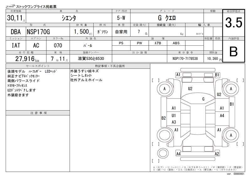 TOYOTA SIENTA - лот 19300