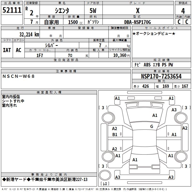 TOYOTA SIENTA X - лот 52111