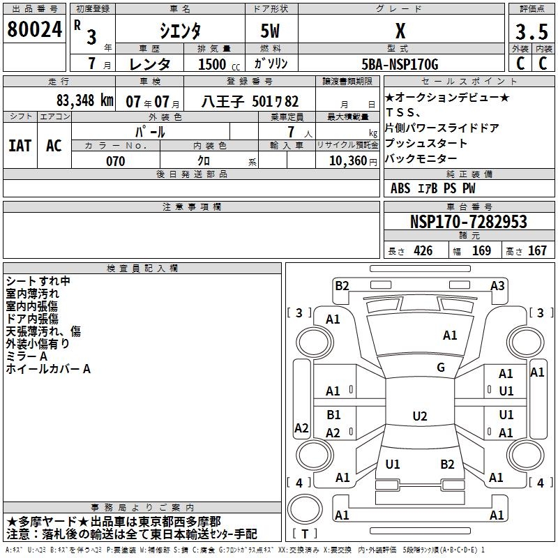 TOYOTA SIENTA X - лот 80024