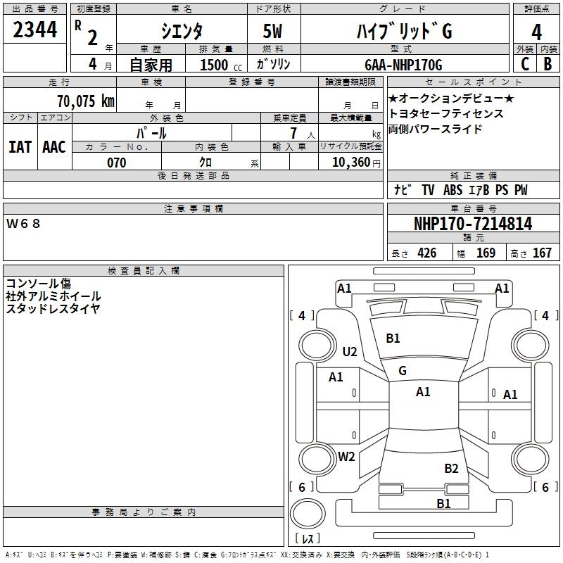 TOYOTA SIENTA HYBRID G - лот 2344