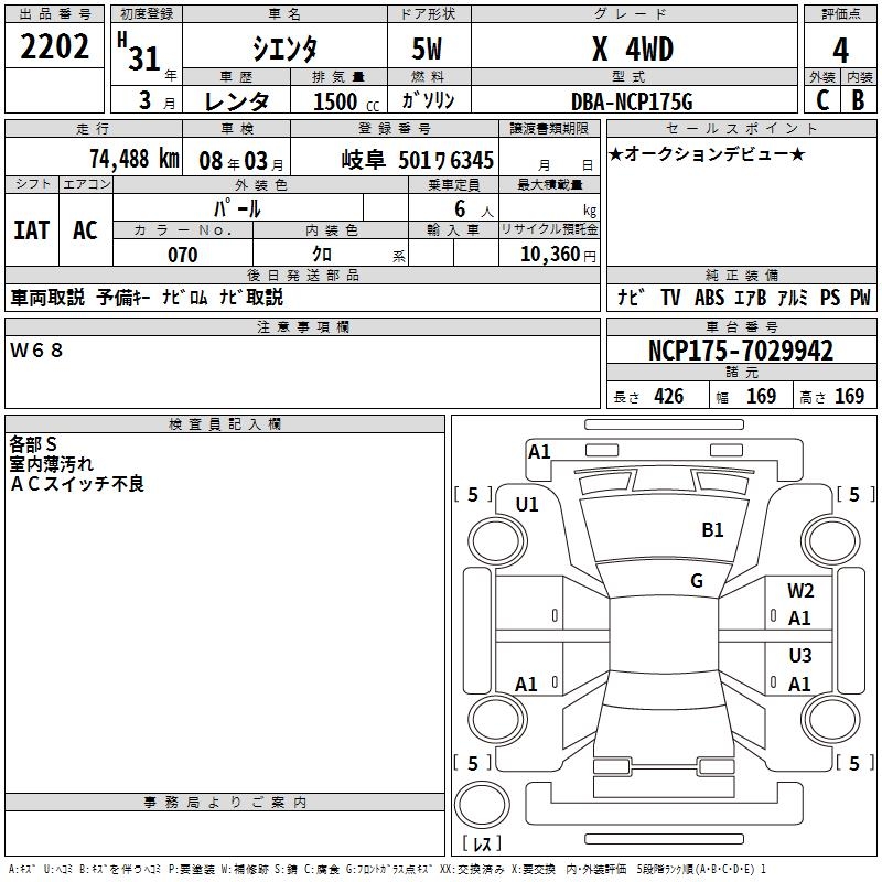 TOYOTA SIENTA X 4WD - лот 2202