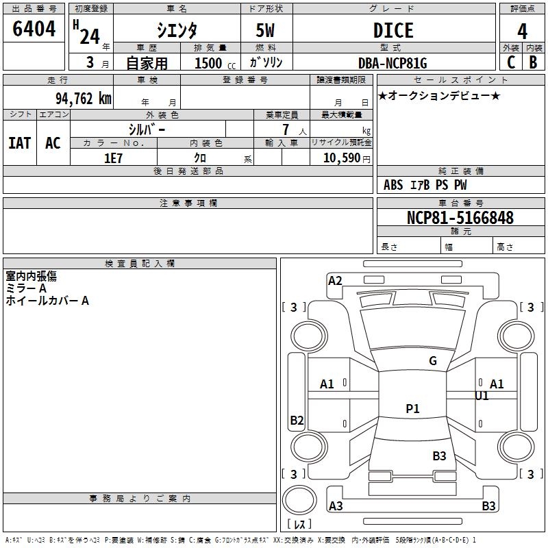 TOYOTA SIENTA DICE - лот 6404