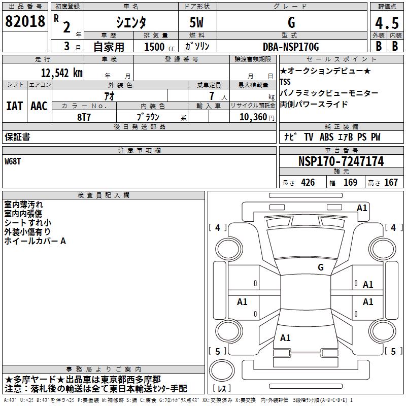 TOYOTA SIENTA G - лот 82018