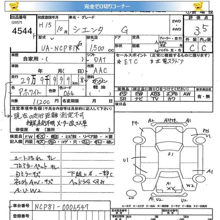 TOYOTA SIENTA G - лот 4544