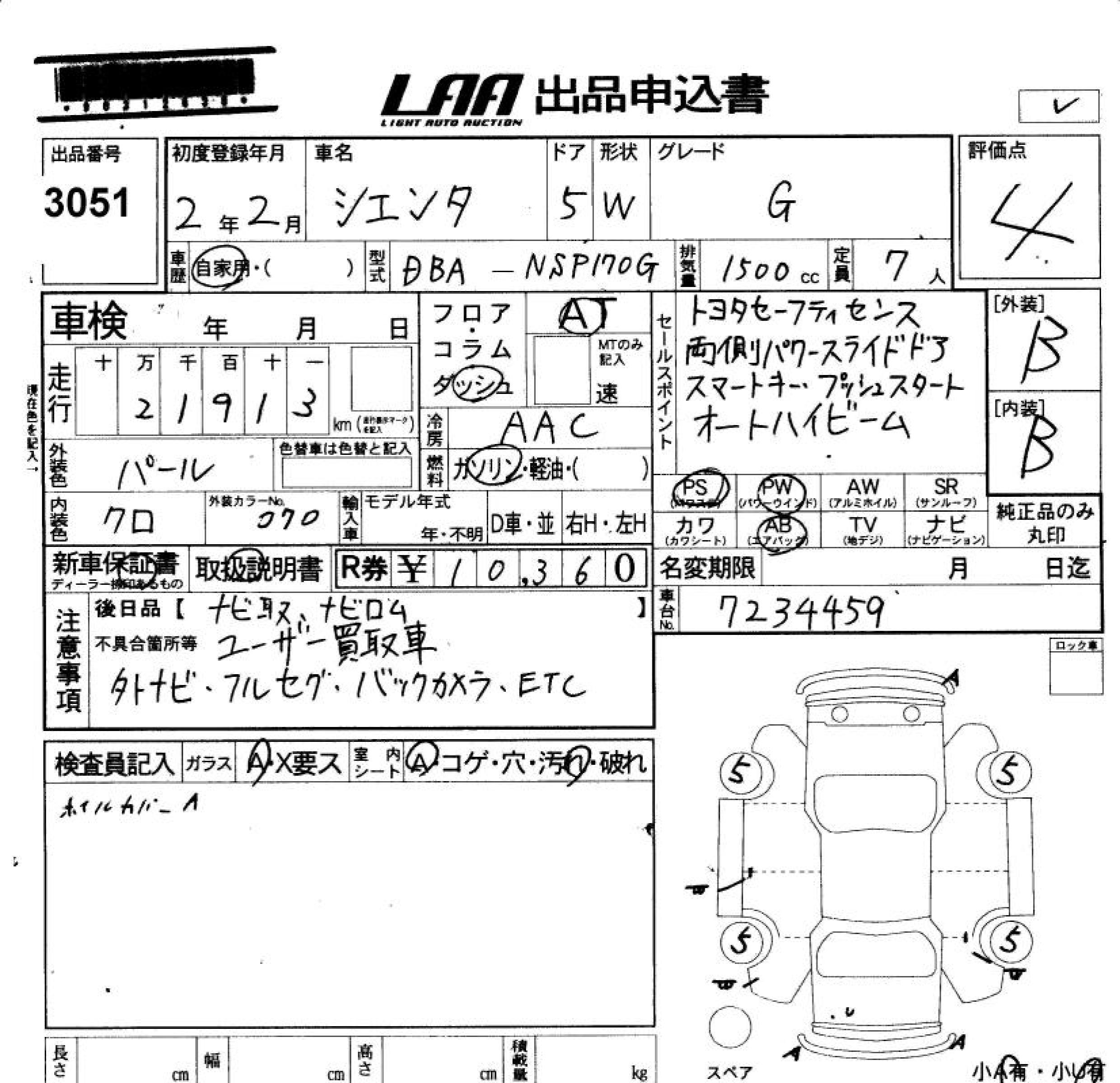 TOYOTA SIENTA G - лот 3051
