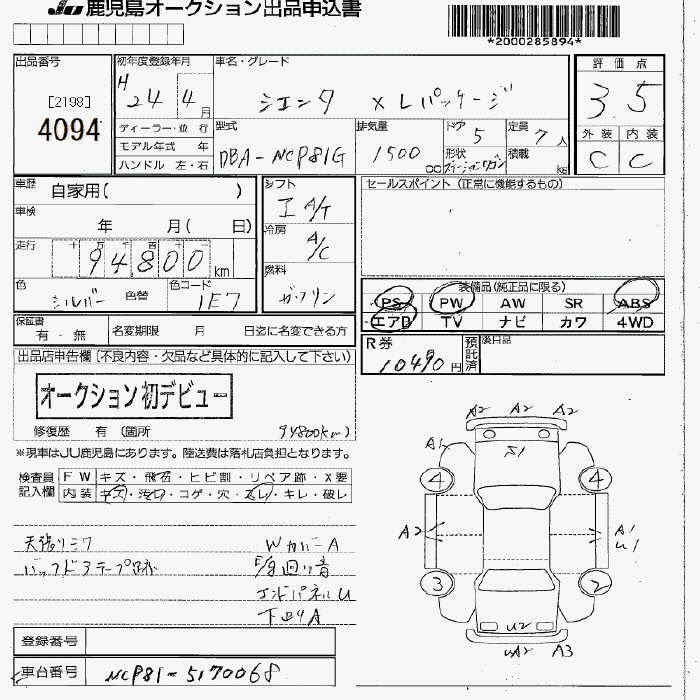 TOYOTA SIENTA X L PACKAGE - лот 4094