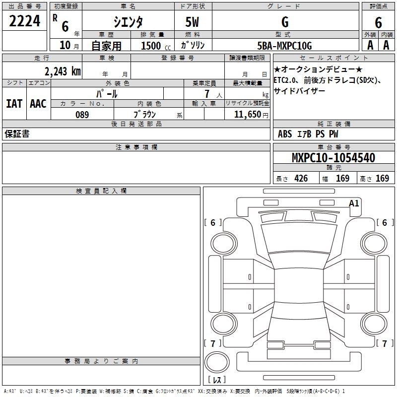 TOYOTA SIENTA G - лот 2224
