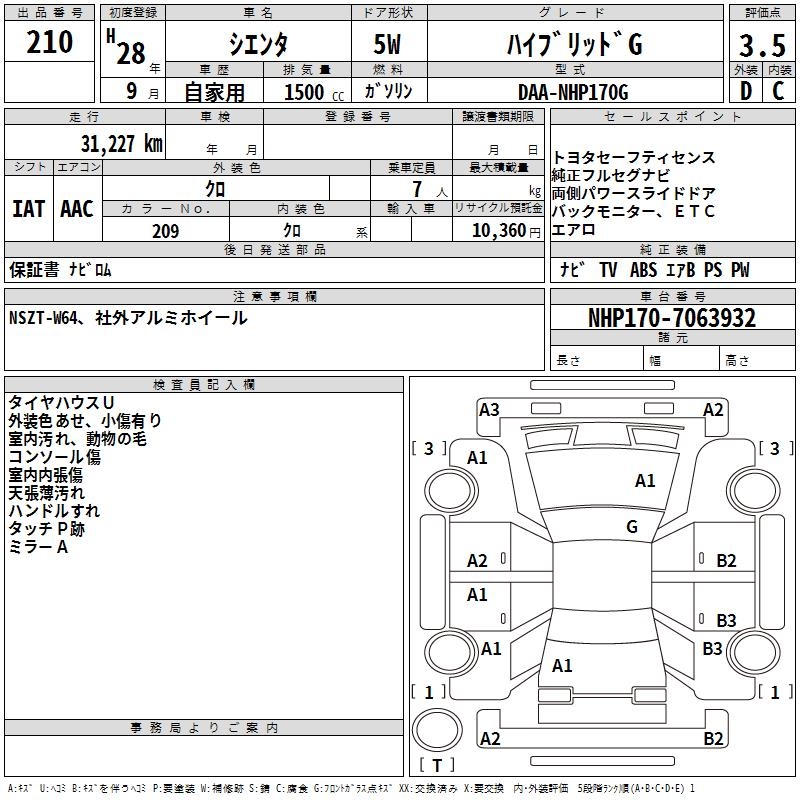 TOYOTA SIENTA HYBRID G - лот 210