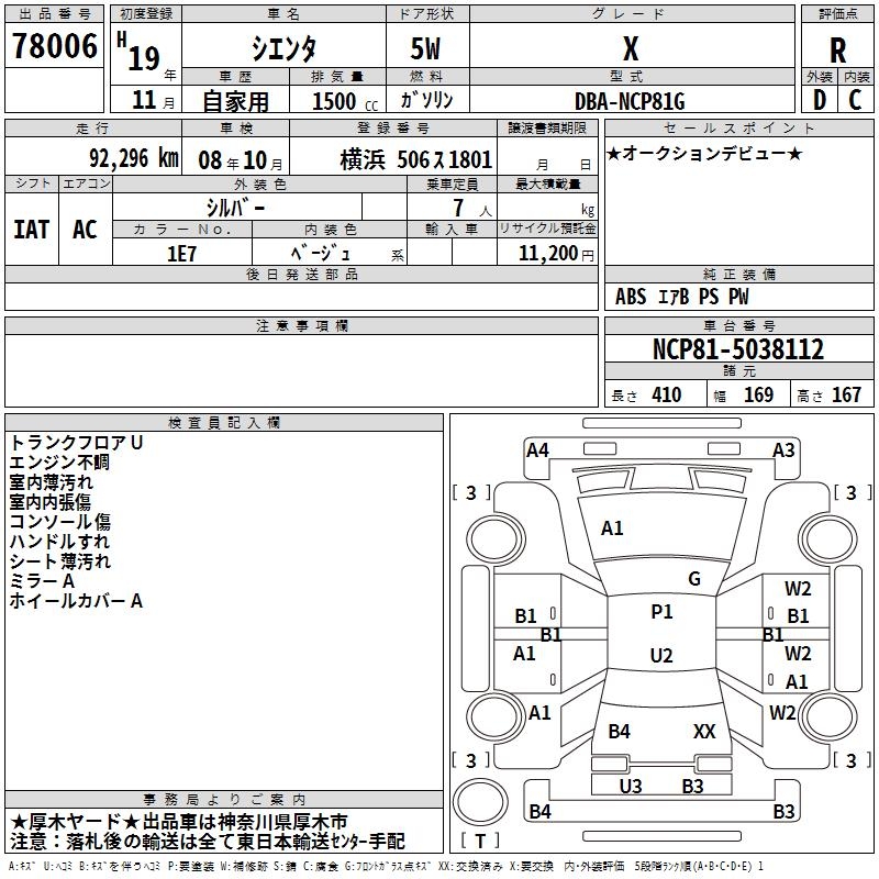 TOYOTA SIENTA X - лот 78006