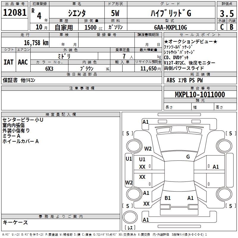 TOYOTA SIENTA HYBRID G - лот 12081