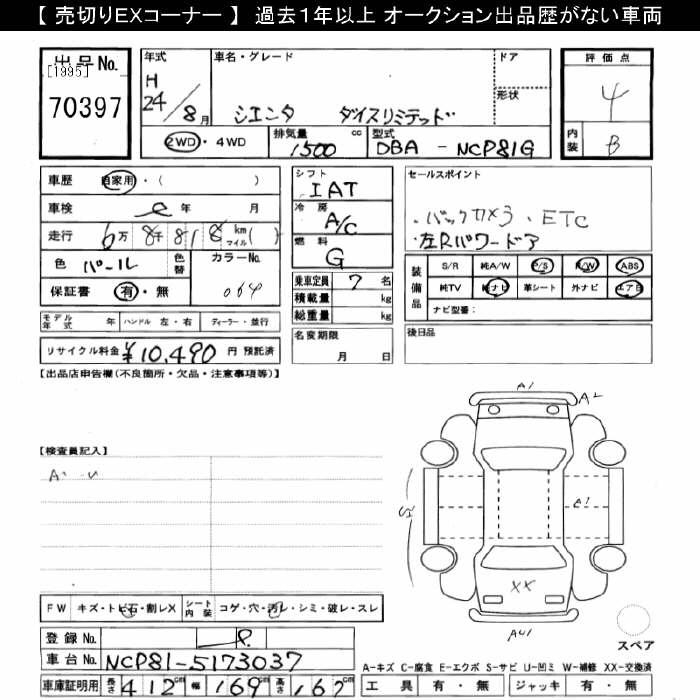 TOYOTA SIENTA DICE LTD - лот 70397