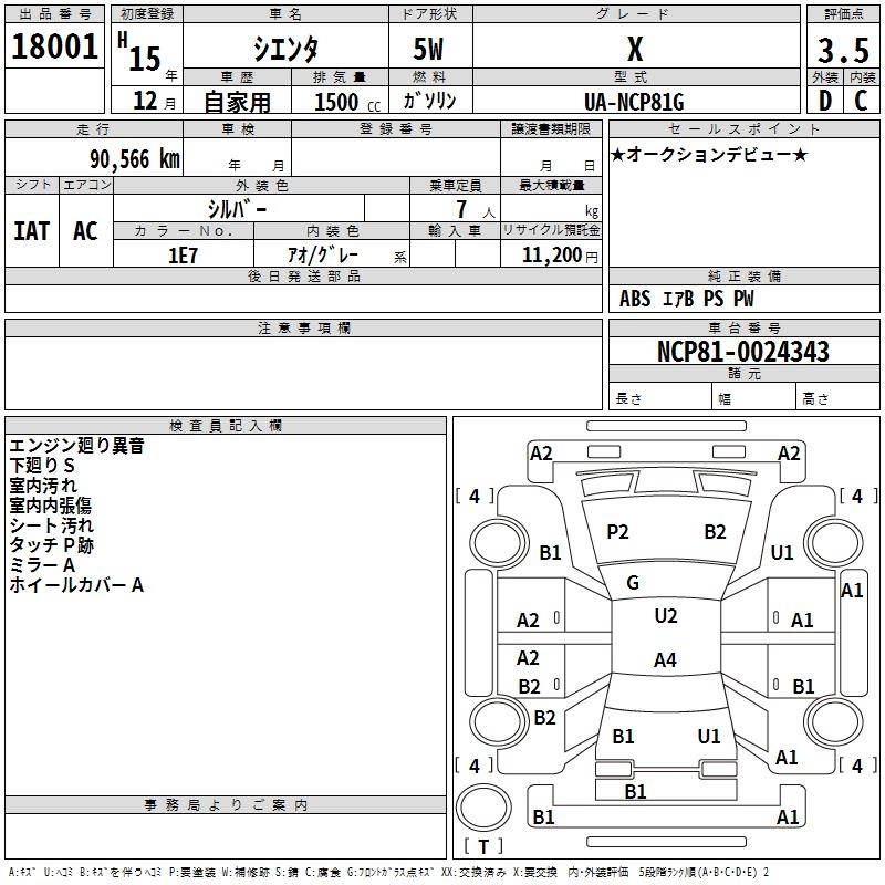 TOYOTA SIENTA X - лот 18001