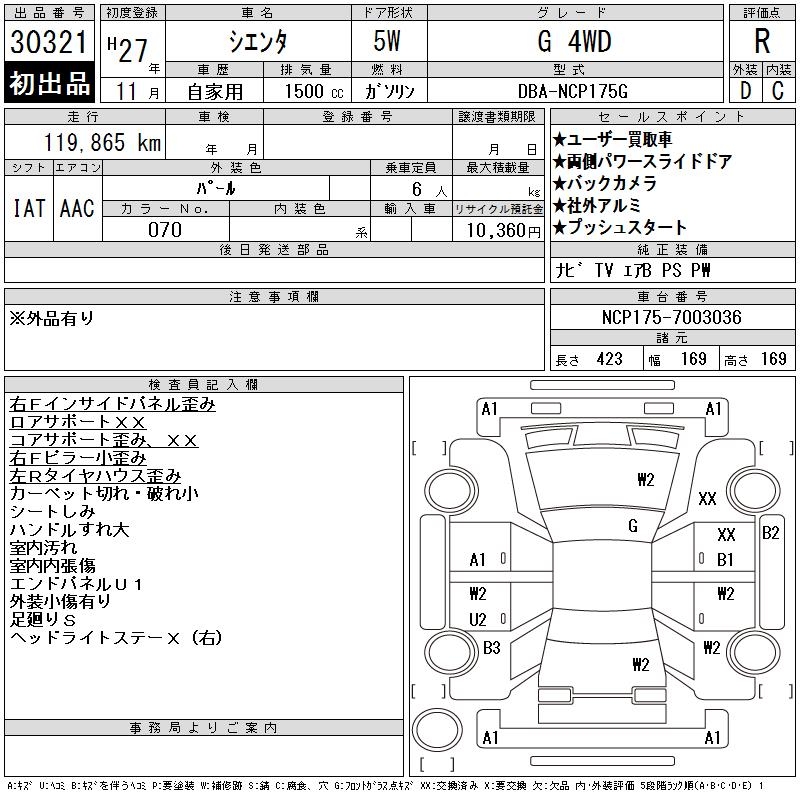 TOYOTA SIENTA G 4WD - лот 30321