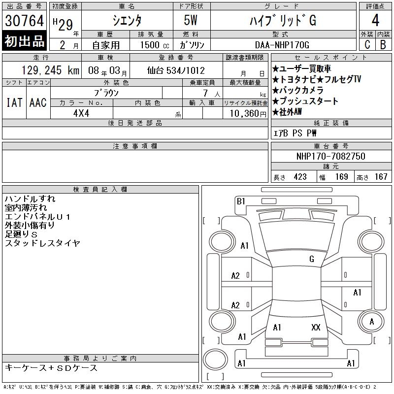 TOYOTA SIENTA HYBRID G - лот 30764