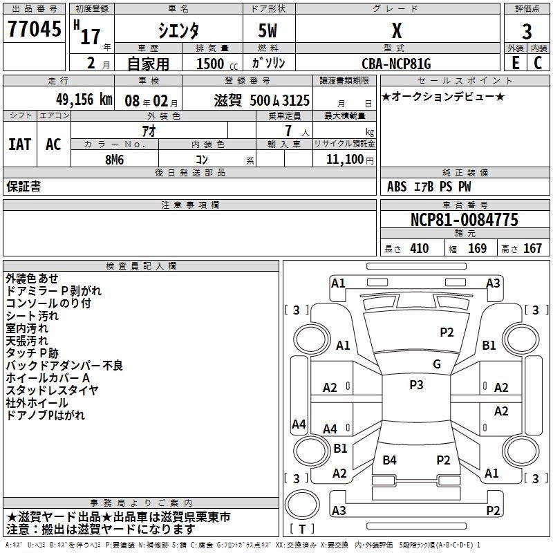TOYOTA SIENTA X - лот 77045