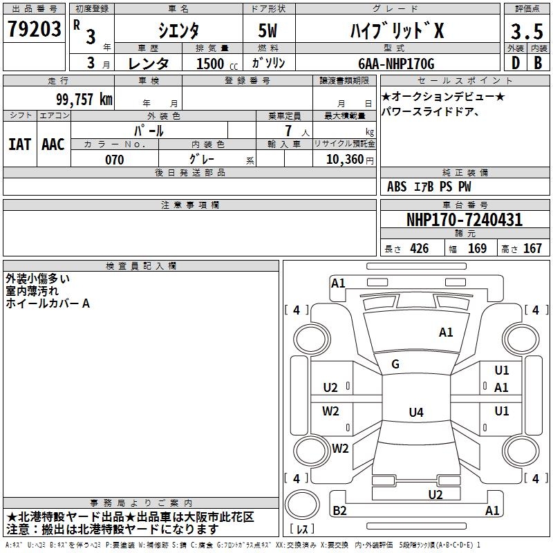 TOYOTA SIENTA HYBRID X - лот 79203