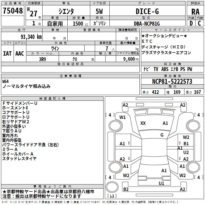 TOYOTA SIENTA DICE-G - лот 75048