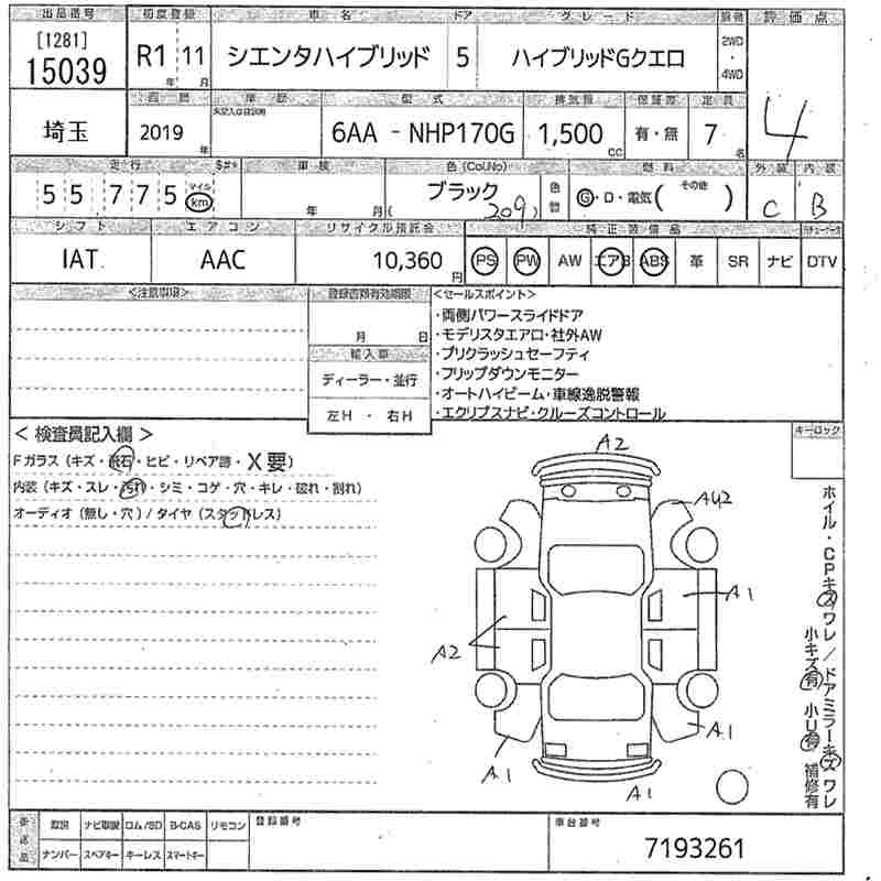 TOYOTA SIENTA HYBRID GKERO - лот 15039