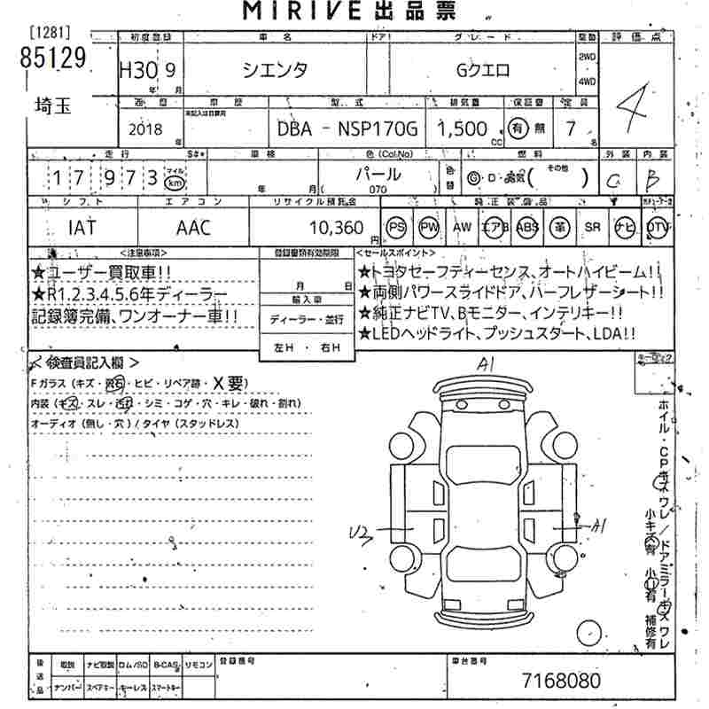 TOYOTA SIENTA GKERO - лот 85129