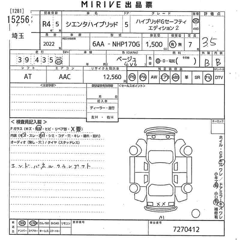 TOYOTA SIENTA HYBRID G SAFETY EDITION 2 - лот 15256