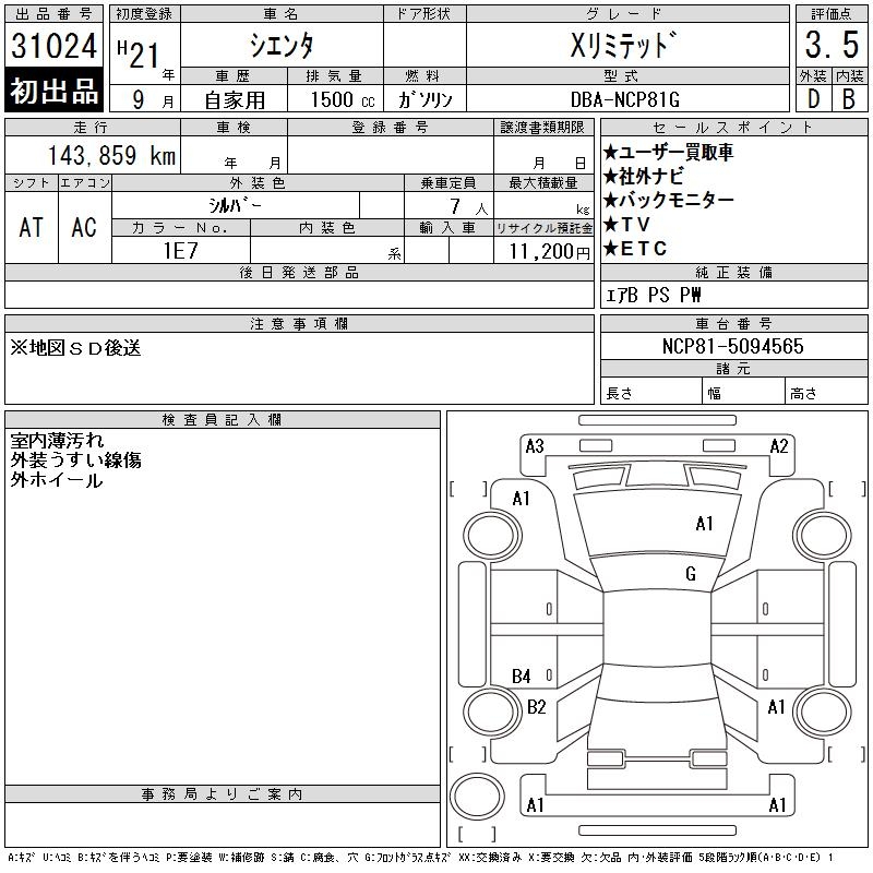 TOYOTA SIENTA X LIMITED - лот 31024