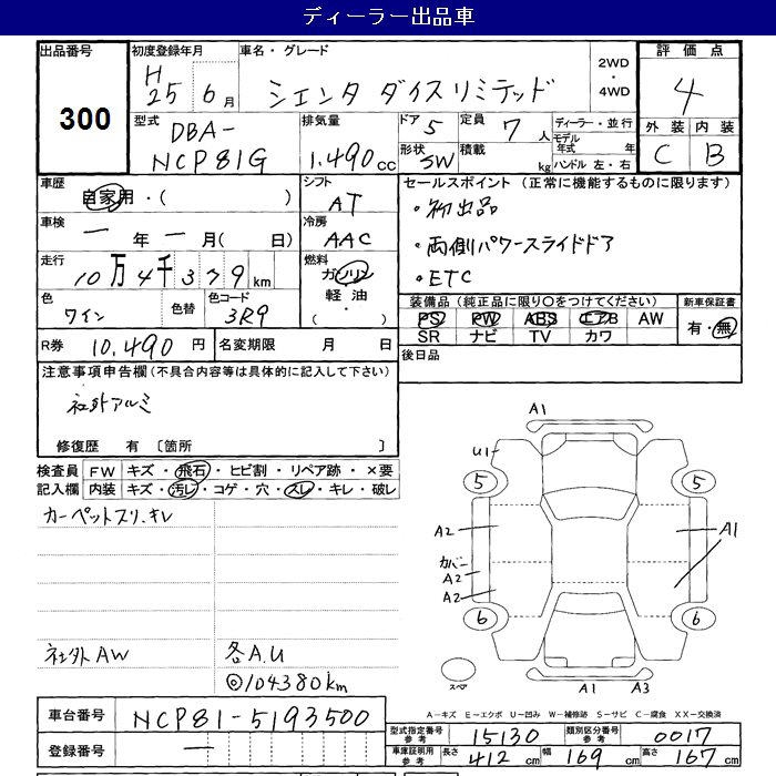 TOYOTA SIENTA DICE LTD - лот 300