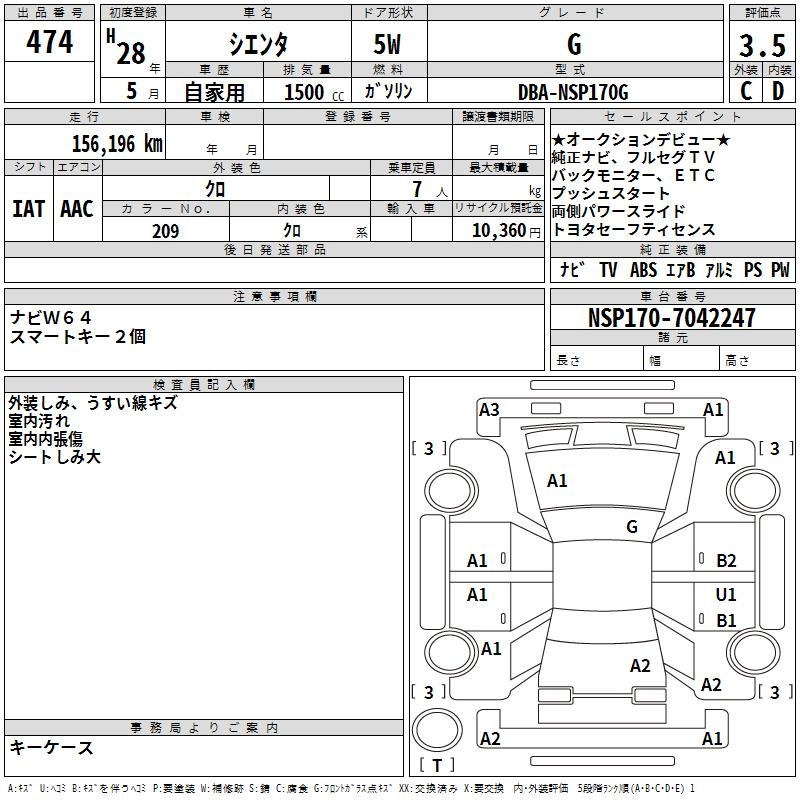 TOYOTA SIENTA G - лот 474