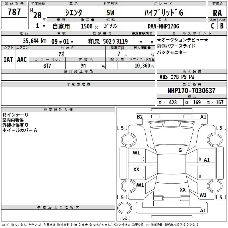 TOYOTA SIENTA HYBRID G - лот 787