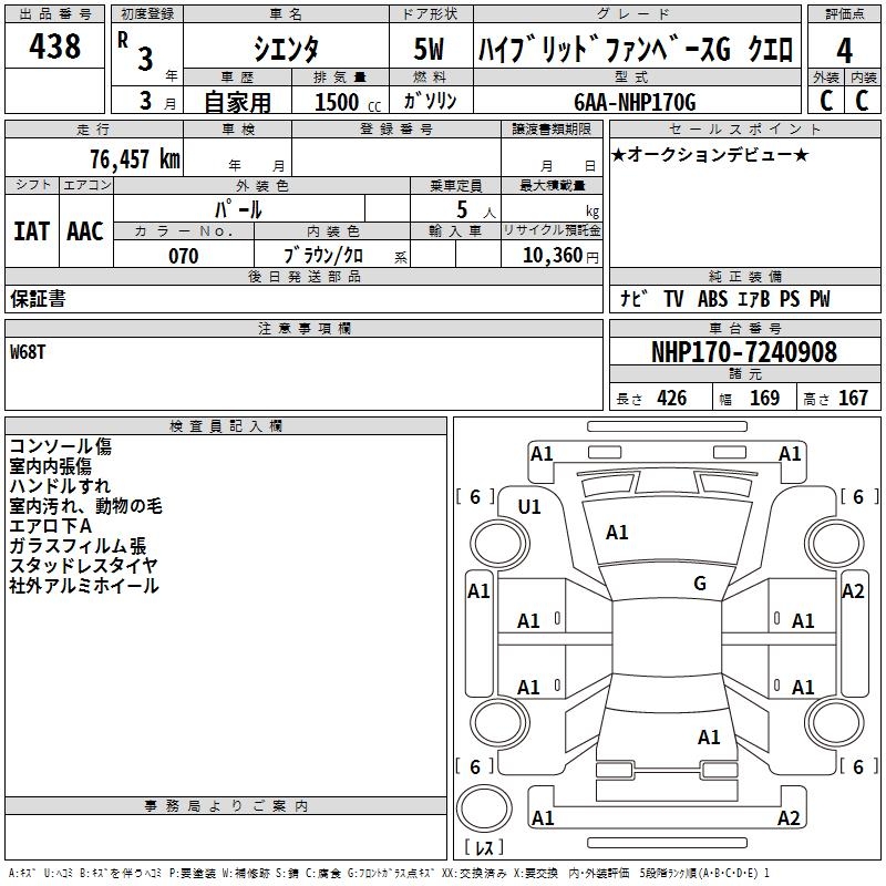 TOYOTA SIENTA HYBRID FAN BASE GKERO - лот 438