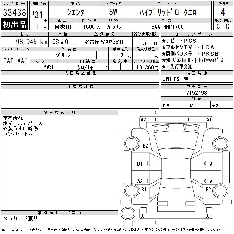 TOYOTA SIENTA HYBRID GKERO - лот 33438
