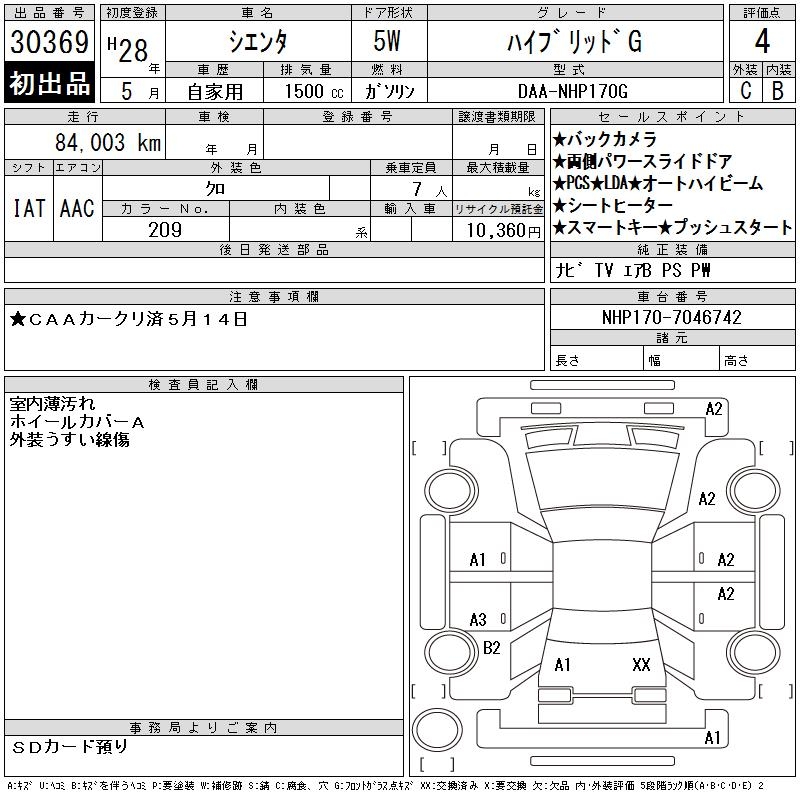 TOYOTA SIENTA HYBRID G - лот 30369