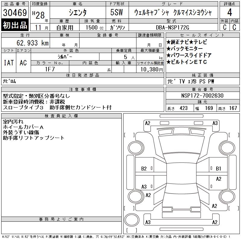 TOYOTA SIENTA WELL CAB SHAKU RU MY S USE CAR - лот 30469