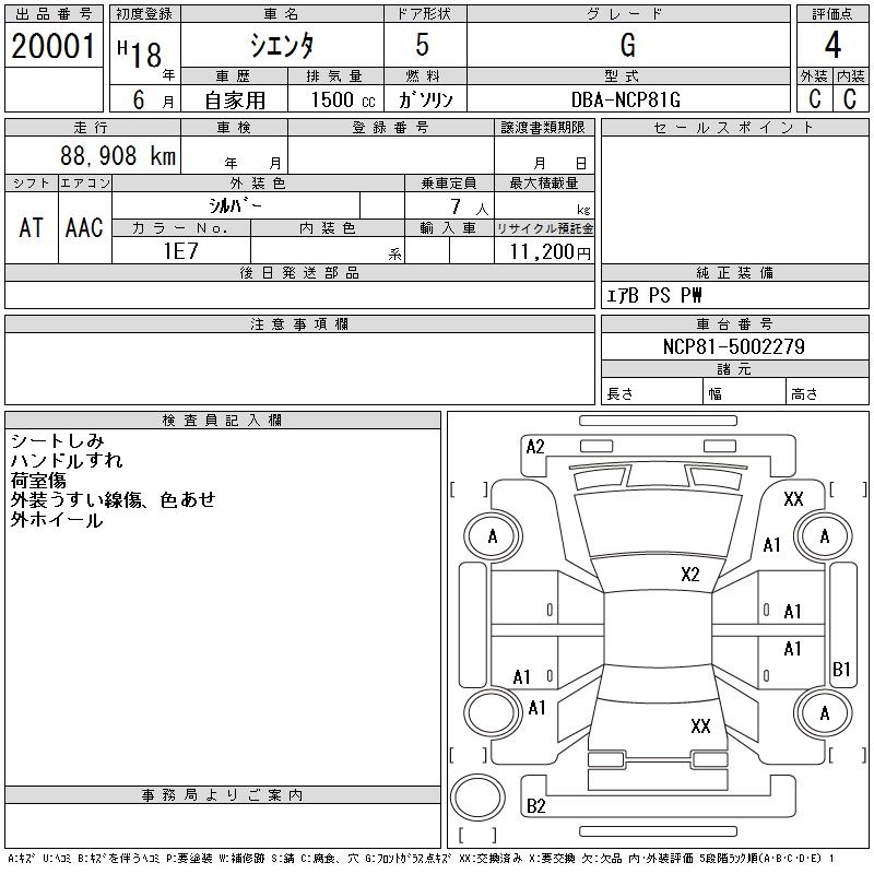 TOYOTA SIENTA G - лот 20001