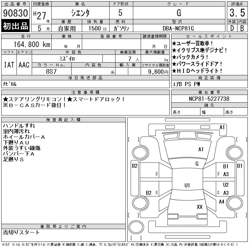 TOYOTA SIENTA G - лот 90830