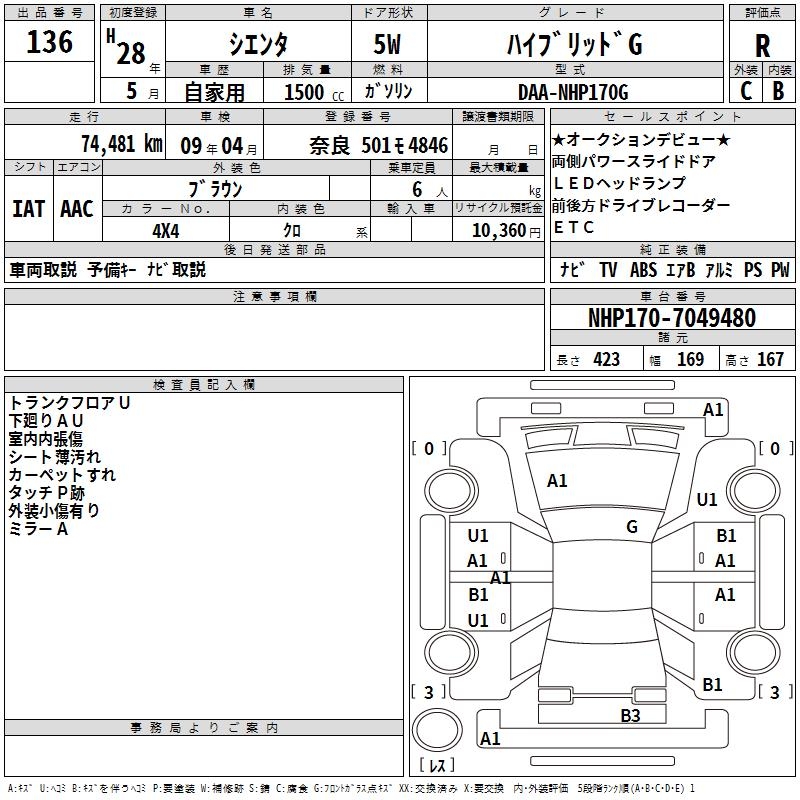 TOYOTA SIENTA HYBRID G - лот 136