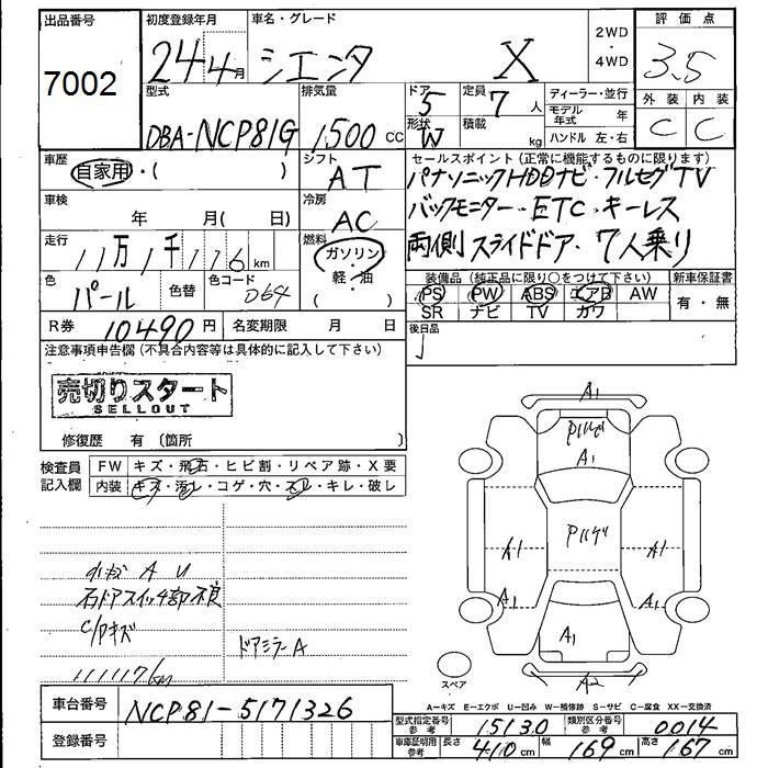 TOYOTA SIENTA X - лот 7002