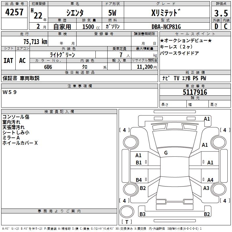 TOYOTA SIENTA X LIMITED - лот 4257