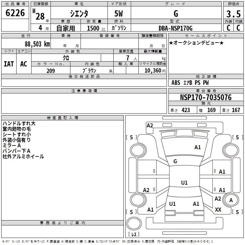 TOYOTA SIENTA G - лот 6226
