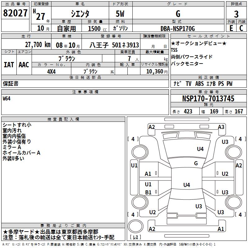 TOYOTA SIENTA G - лот 82027