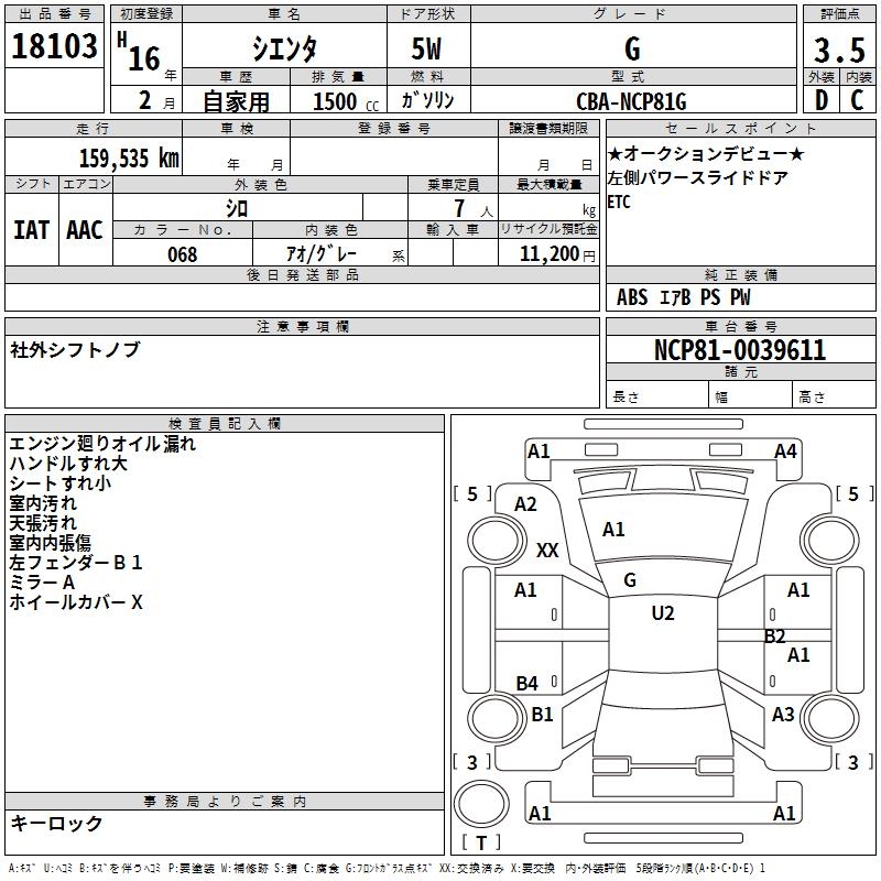 TOYOTA SIENTA G - лот 18103