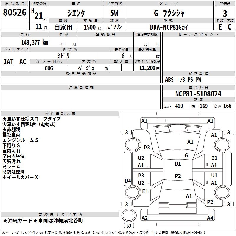 TOYOTA SIENTA G WELLFARE CAR - лот 80526