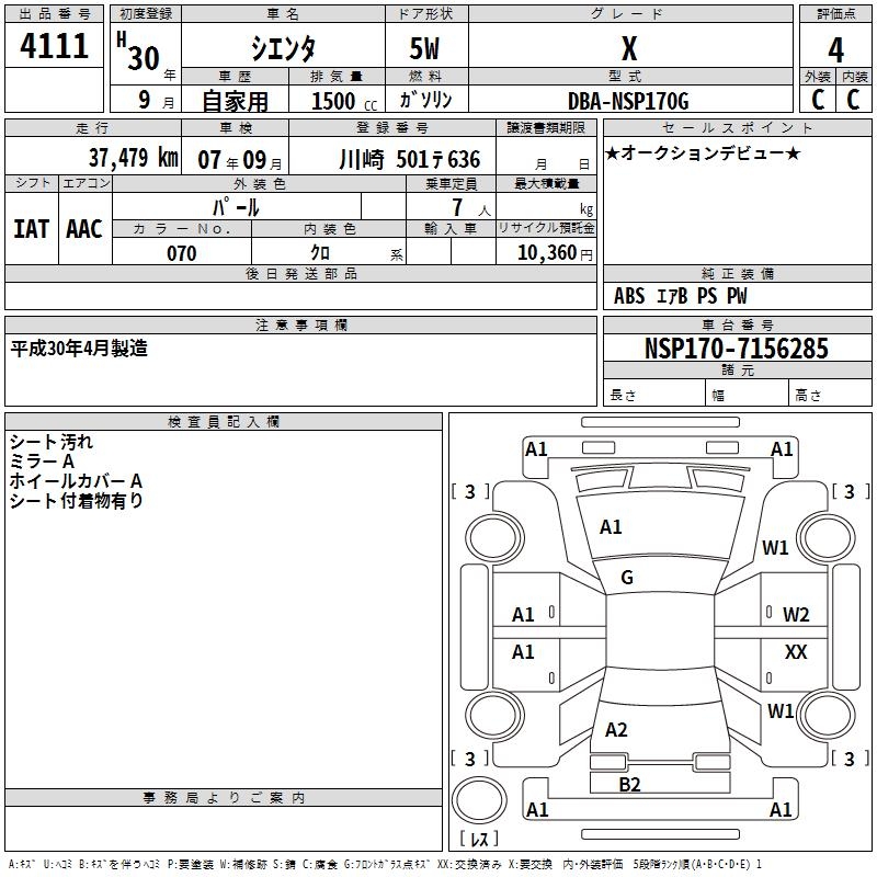 TOYOTA SIENTA X - лот 4111