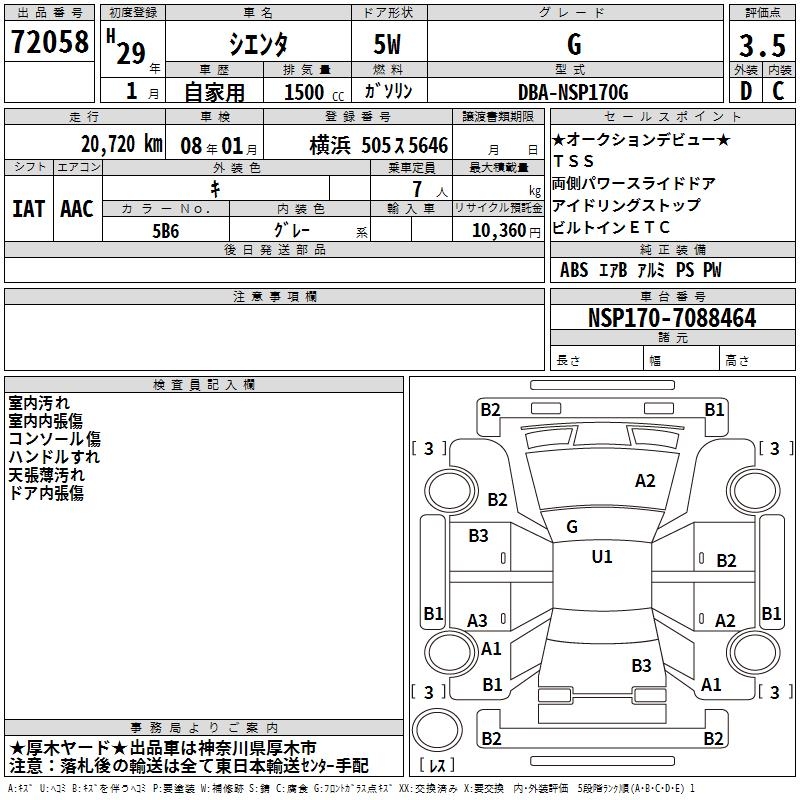 TOYOTA SIENTA G - лот 72058