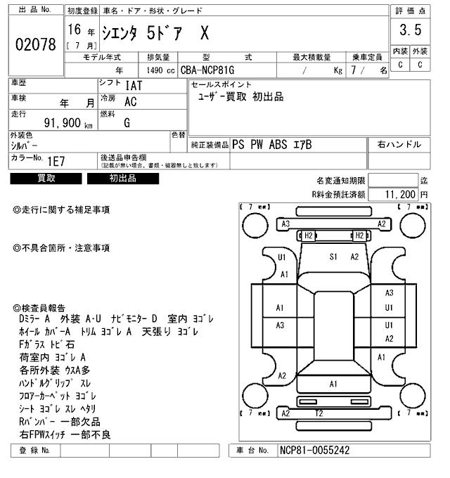 TOYOTA SIENTA X - лот 2078