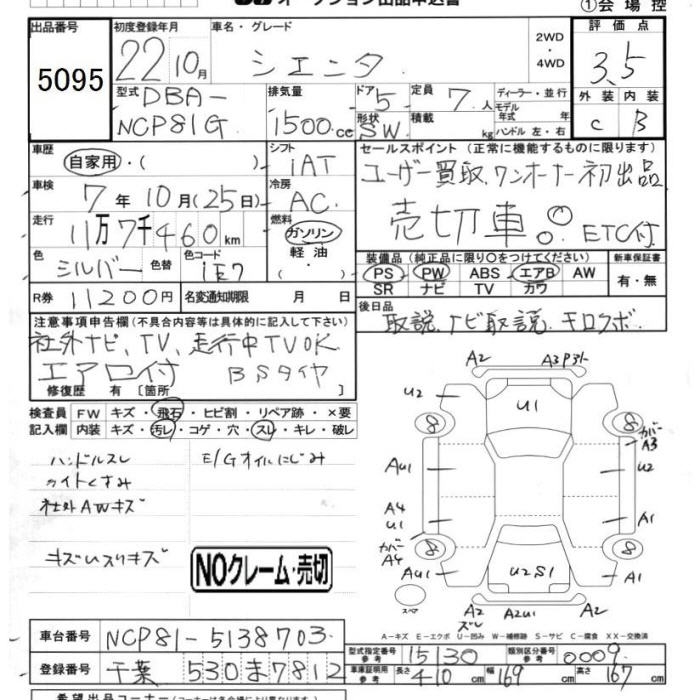 TOYOTA SIENTA - лот 5095