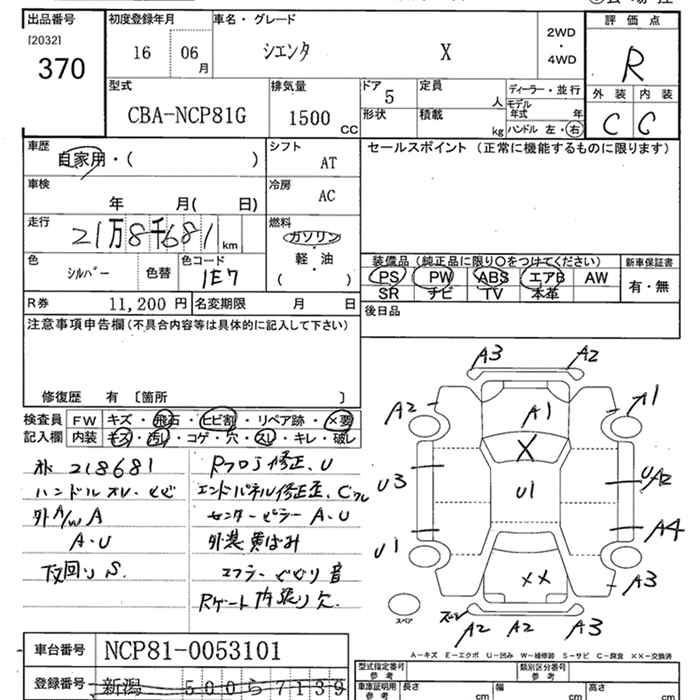 TOYOTA SIENTA X - лот 370