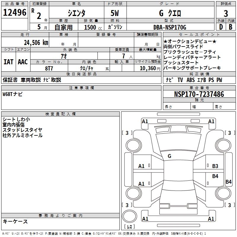 TOYOTA SIENTA GKERO - лот 12496