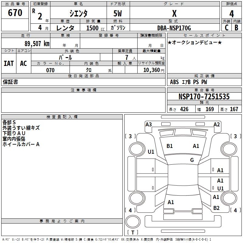 TOYOTA SIENTA X - лот 670